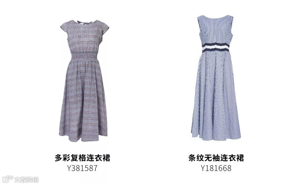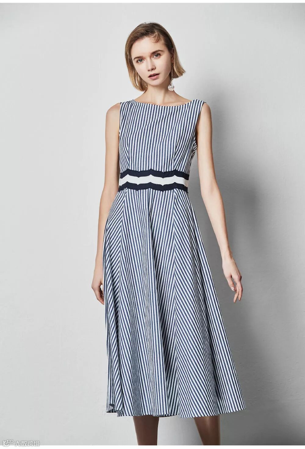 蓝色条/格纹连衣裙自带清凉感,搭配收腰设计,视觉上将腿部拉长。