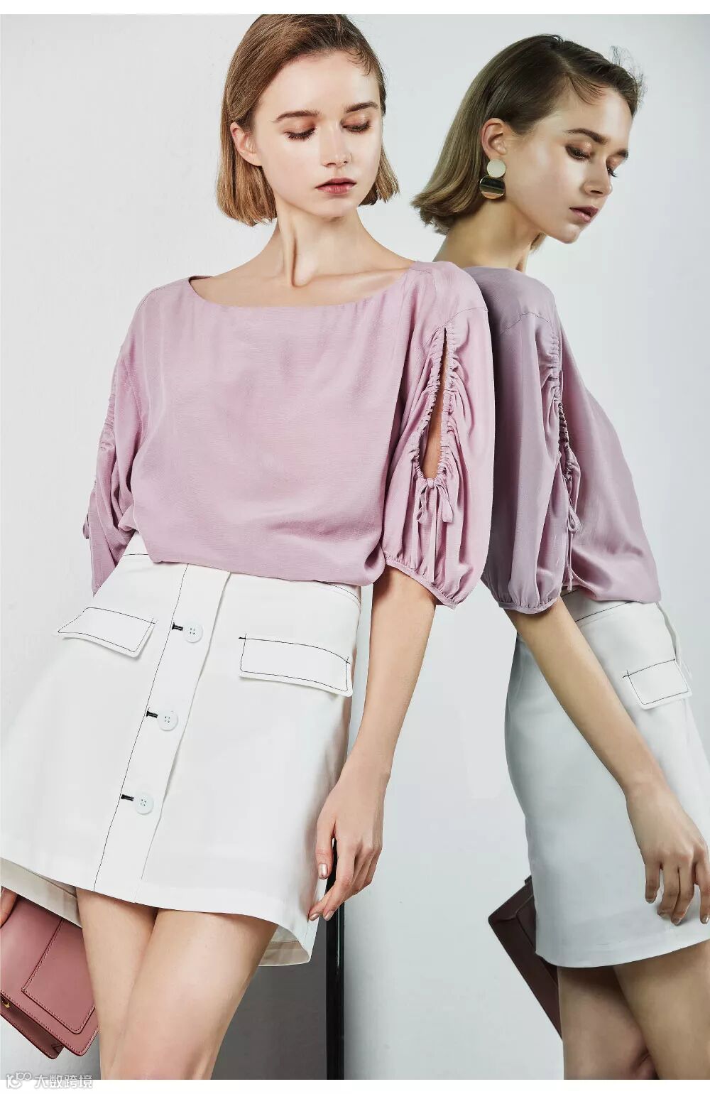 粉色衬衫同样有浪漫的一面,搭配清爽的半裙,尽显腿部线条。
