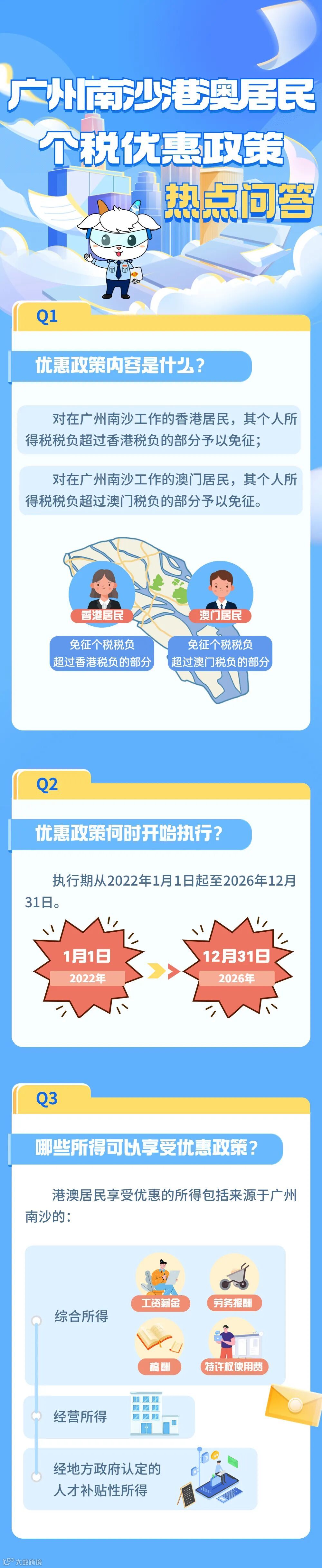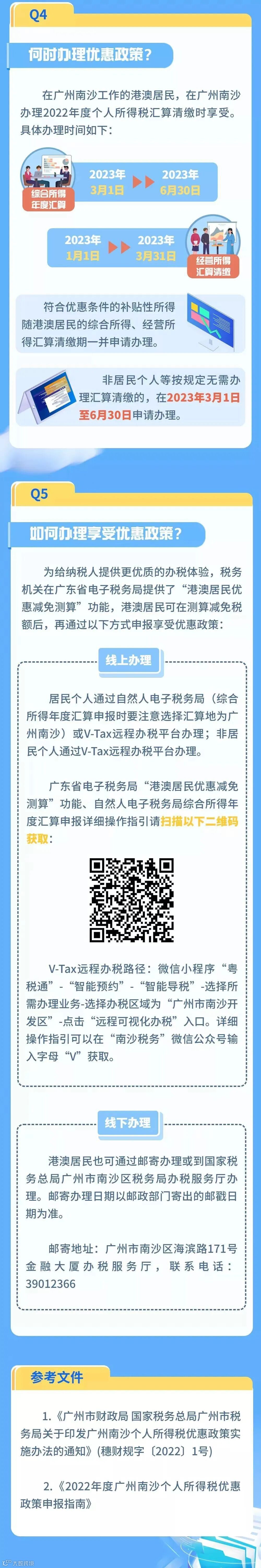 《财政部 税务总局关于广州南沙个人所得税优惠政策的通知》(财税〔2022〕29号)规定,对在广州南沙工作的香港居民,其个人所得税税负超过香港税负的部分予以免征;对在广州南沙工作的澳门居民,其个人所得税税负超过澳门税负的部分予以免征。纳税人在广州南沙办理个人所得税年度汇算清缴时享受上述优惠政策。小编对大家比较关心的热点问题进行了梳理,一起来学习吧!