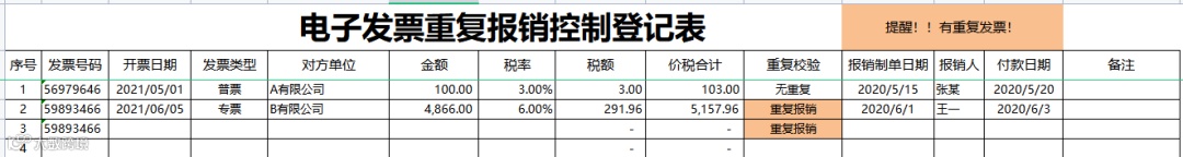 重复报销是电子发票的一大通病。而很多企业会购买一些发票管理软件,或者直接通过发票号码来登记备查簿。