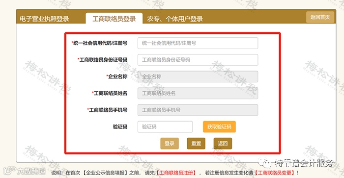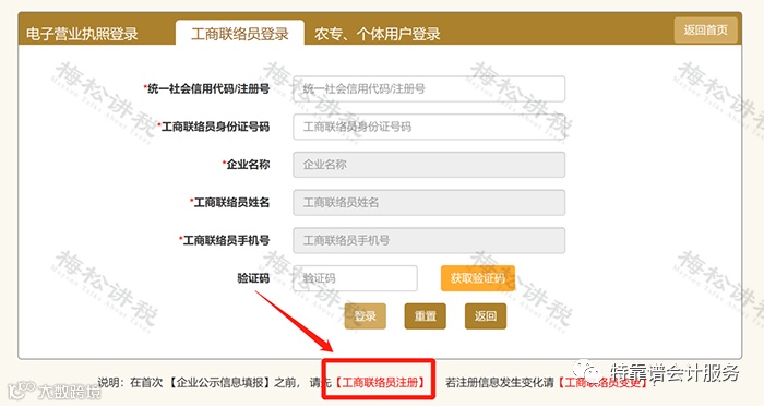 四、首次登录没有联络员的,点击下方【工商联络员注册】,以完成备案