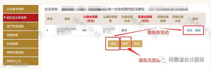(1)当年股东及出资未发生变化,直接点击【保存】即可;