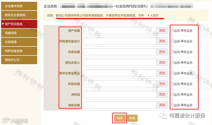 企业根据2022年度企业资产负债表及利润表情况,填报相应的信息,同时,可以自行选择是否公示。