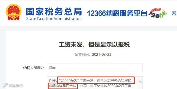 你好,我2020年2月工资未发,但是公司已经给我报税,请问这样是否合法,公司一直不给发放2020年2月工资,公司名为***有限公司