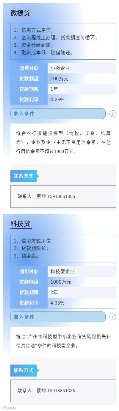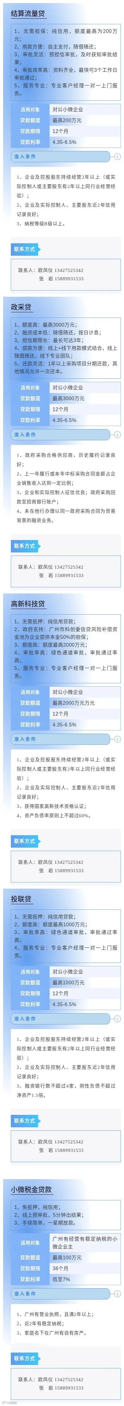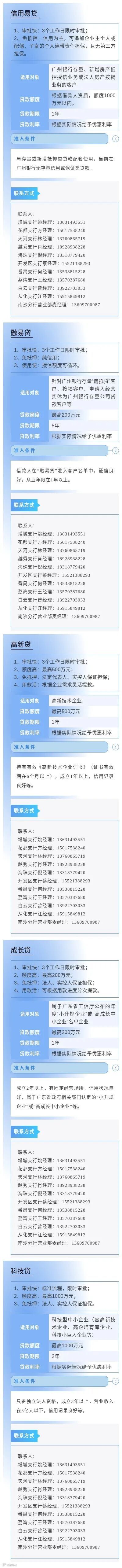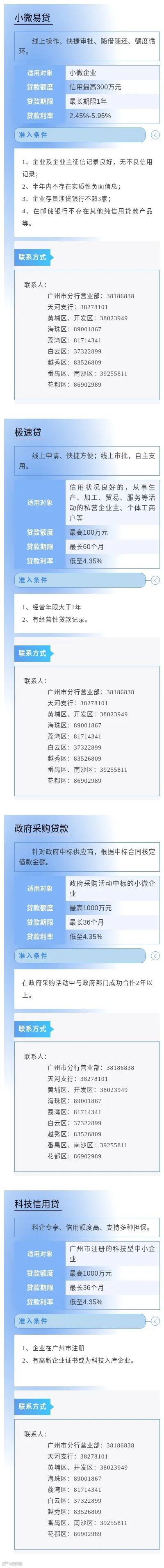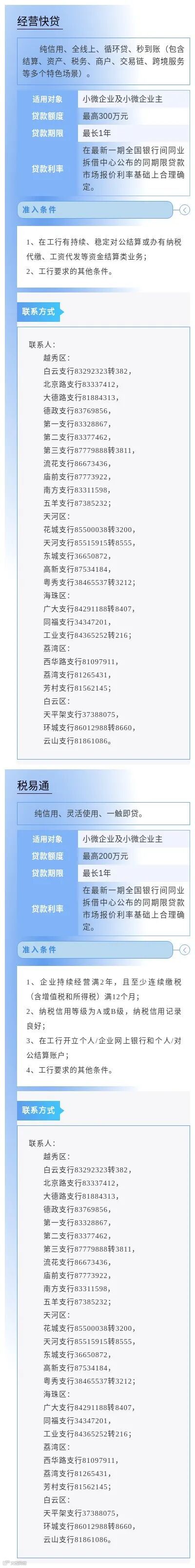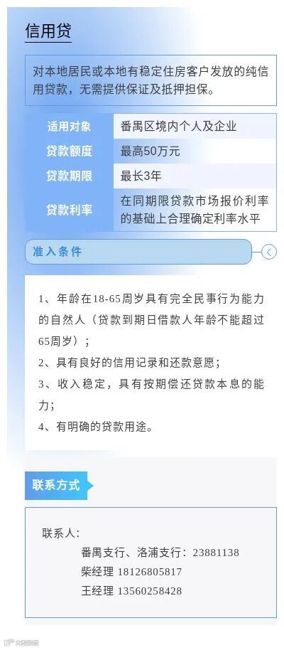 为进一步缓解小微企业因缺乏担保品所导致的融资难问题,畅通市场主体对免抵押免担保信贷产品及相关金融服务的申请渠道,中国人民银行广州分行营业管理部组织广州地区各银行业金融机构梳理了小微企业申请信用贷款指南,现予发布。各市场主体如有融资需求,可联系各银行联系人直接咨询了解。