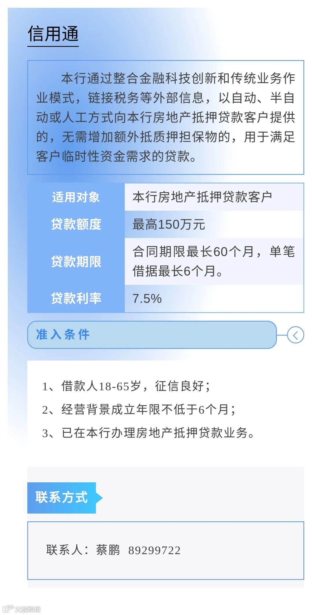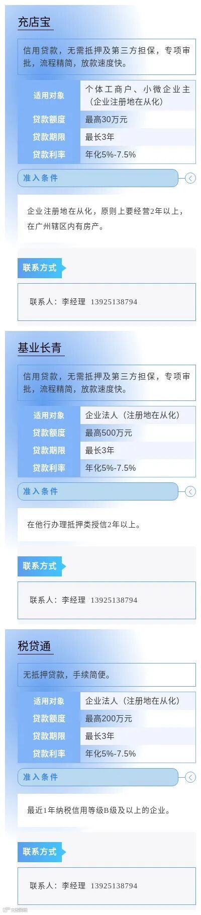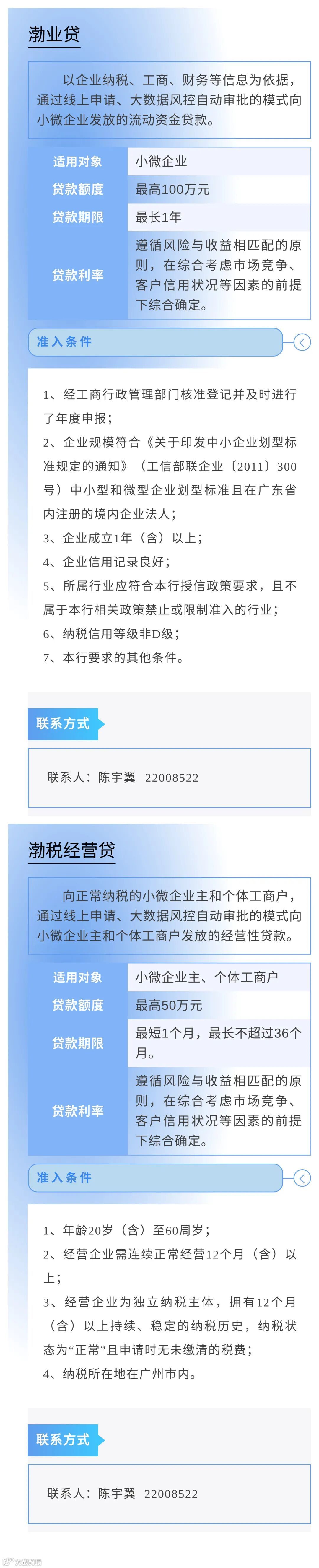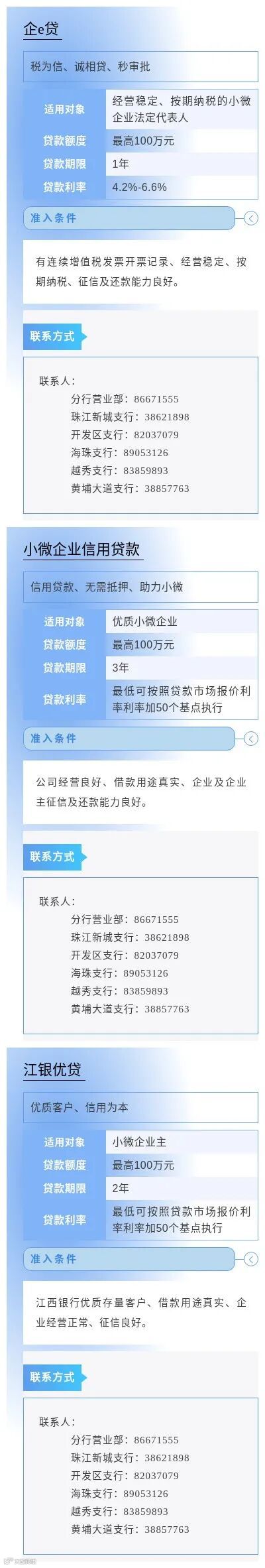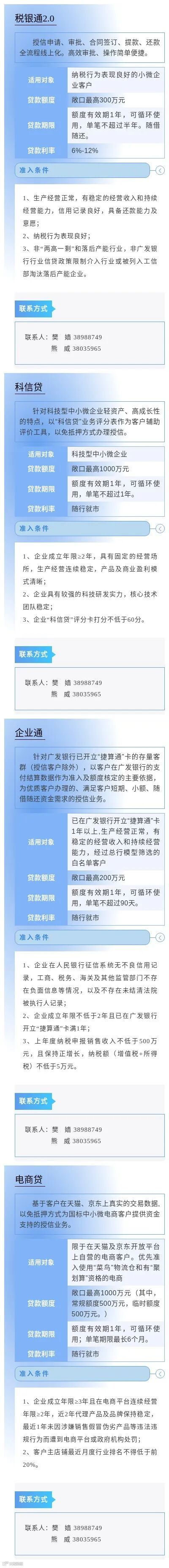为进一步缓解小微企业因缺乏担保品所导致的融资难问题,畅通市场主体对免抵押免担保信贷产品及相关金融服务的申请渠道,中国人民银行广州分行营业管理部组织广州地区各银行业金融机构梳理了小微企业申请信用贷款指南,现予发布。各市场主体如有融资需求,可联系各银行联系人直接咨询了解。