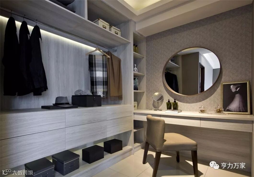 更衣室,则呈现分门别类的柜体型式,让衣物、配件、包包与鞋子等各得其所,让生活物品不仅被妥善收纳,也陈列出展示美感!