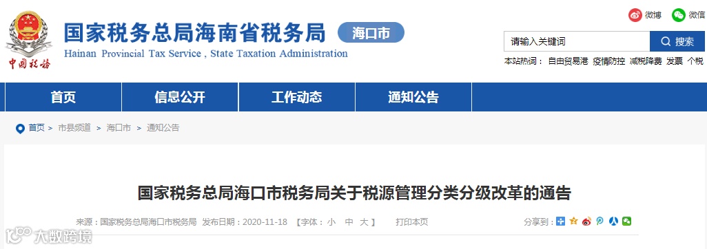 为进一步推进全市税收征管方式转变,优化税收营商环境,夯实与自由贸易港建设相适应的税收征管基础,国家税务总局海口市税务局自2020年9月起全面实行税源管理分类分级改革,由“管户”向“管事”转变,以更加专业化、个性化的团队,为广大纳税人提供优质服务。