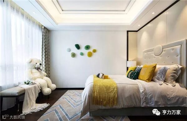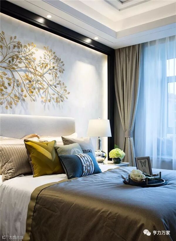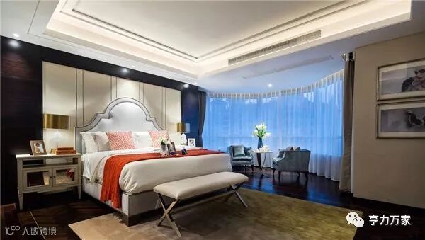 主卧大面积的使用米色与棕色,简约里透着毋庸置疑的高贵与优雅,而掺杂其中恰到好处的黄、橙色竟然也不显得突兀,像是香奈儿五号的温柔,优雅,略显奢侈,越沉淀越温馨,静看高于生活,体验后发现原来它就是生活。