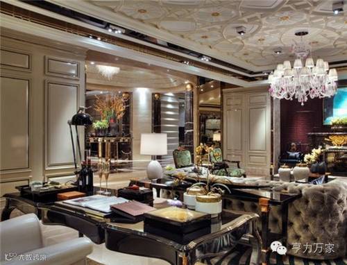 在设计中力求完美,无处不体现出奢华高贵,极富光泽和质感的抛光面板和真皮沙发、古典造型的单人椅、水晶灯具和随处可见的精美饰品都在突显这一点。
