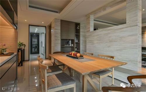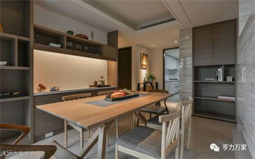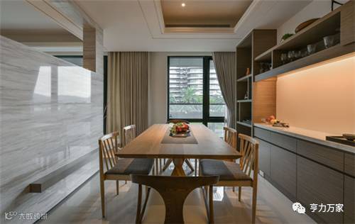 餐厅处的收纳容量超乎想象,彰显餐厅区域气质的同时,也解决了日常生活所需。厨房与餐厅的收纳、储物所需,在墙面的有效利用下,变得简易和便捷。
