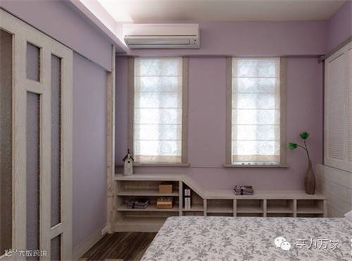 通往卧室的门片,特别以仿古设计处理,营造出怀旧乡村风的质朴感受。而墙边的半高矮柜,则方便收纳生活日常用品。