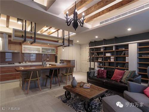 这是一个有着温馨质感的混搭工业风宅,融合一些木质元素增添有休闲度假氛围,室内木门采用粗狂纹理的美式乡村风,浅色木地板,为空间添色加温,让生活空间不过于冰冷生硬。