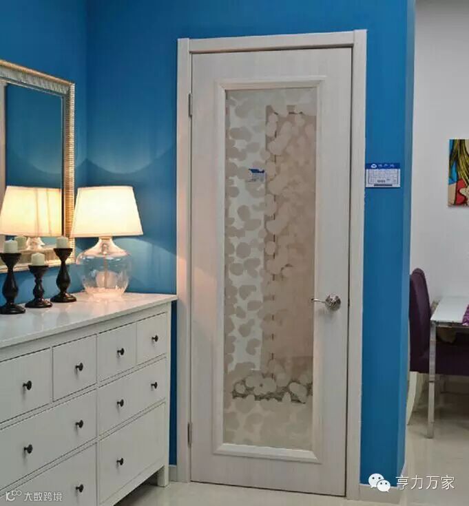 白色的门框结合圆形波点的暗花玻璃设计颇具时尚感。