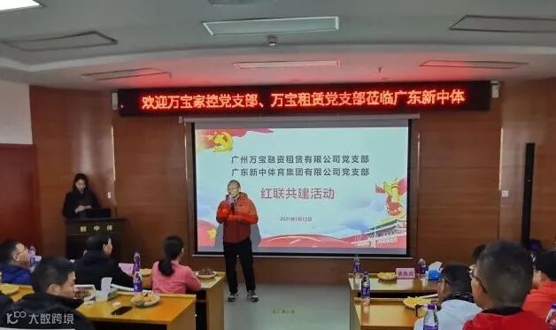 今日(1月12日),广东新中体育集团有限公司党支部与广州万宝融资租赁有限公司党支部在新中体总部开展红联共建活动。