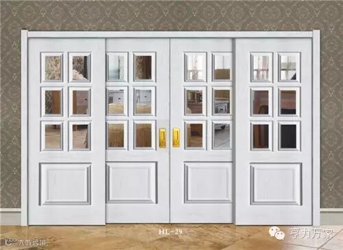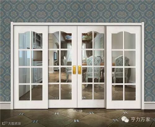 大多采用对扇型、推拉型或折叠式门型,其样式为方格式分割的全玻璃门型,占空间面积小且方便,具有简洁、明快、透明光亮等特点。