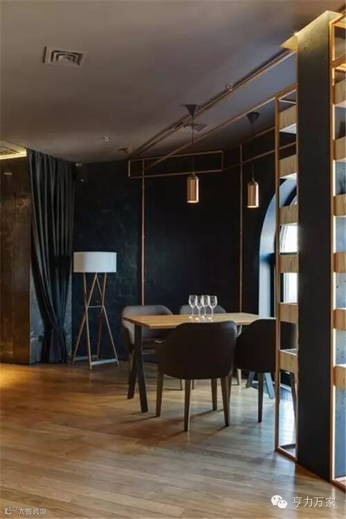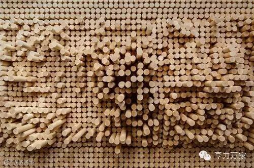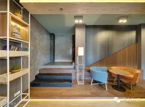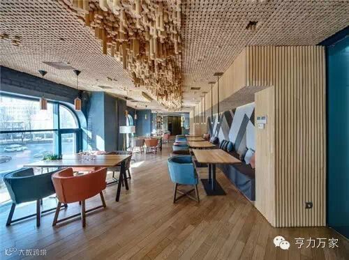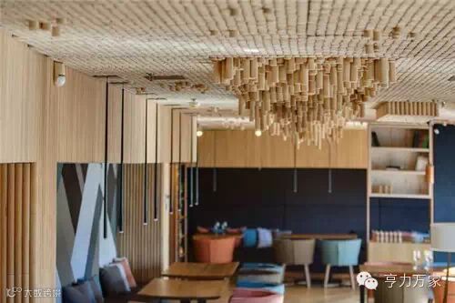 深浅不同交错的木质圆柱,让整个空间都律动起来。