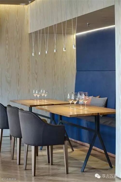 TEPLO在俄罗斯的意思为温暖,业主创造之初,便希望自己的餐厅可以让周边街区的居民感到亲切,像家一样的舒适感,不需要高高在上的冰冷和优越感。YOD Dеsign Lab将餐厅分为上下两层,一层以灰色调搭配利落的线条,简约质感,略带商务气息,二楼则是酒吧兼餐厅,所以在设计上也更加的随性,蓝色调空间搭配夸张木质配饰,朋友闲聊小聚,再合适不过!