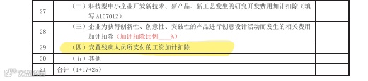 企业在年度终了进行企业所得税年度申报和汇算清缴时,按照支付给残疾职工工资在应付职工薪酬中据实扣除,同时,在A107010《免税、减计收入及加计扣除优惠明细表》29行“(四)安置残疾人所支付的工资加计扣除”填写按照支付给残疾职工工资的100%加计扣除的金额。