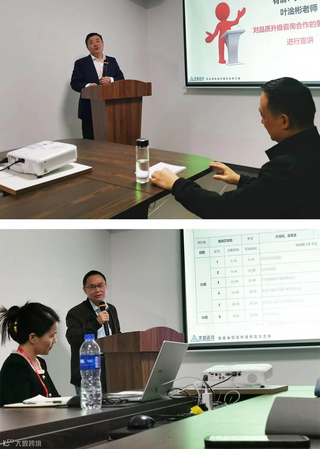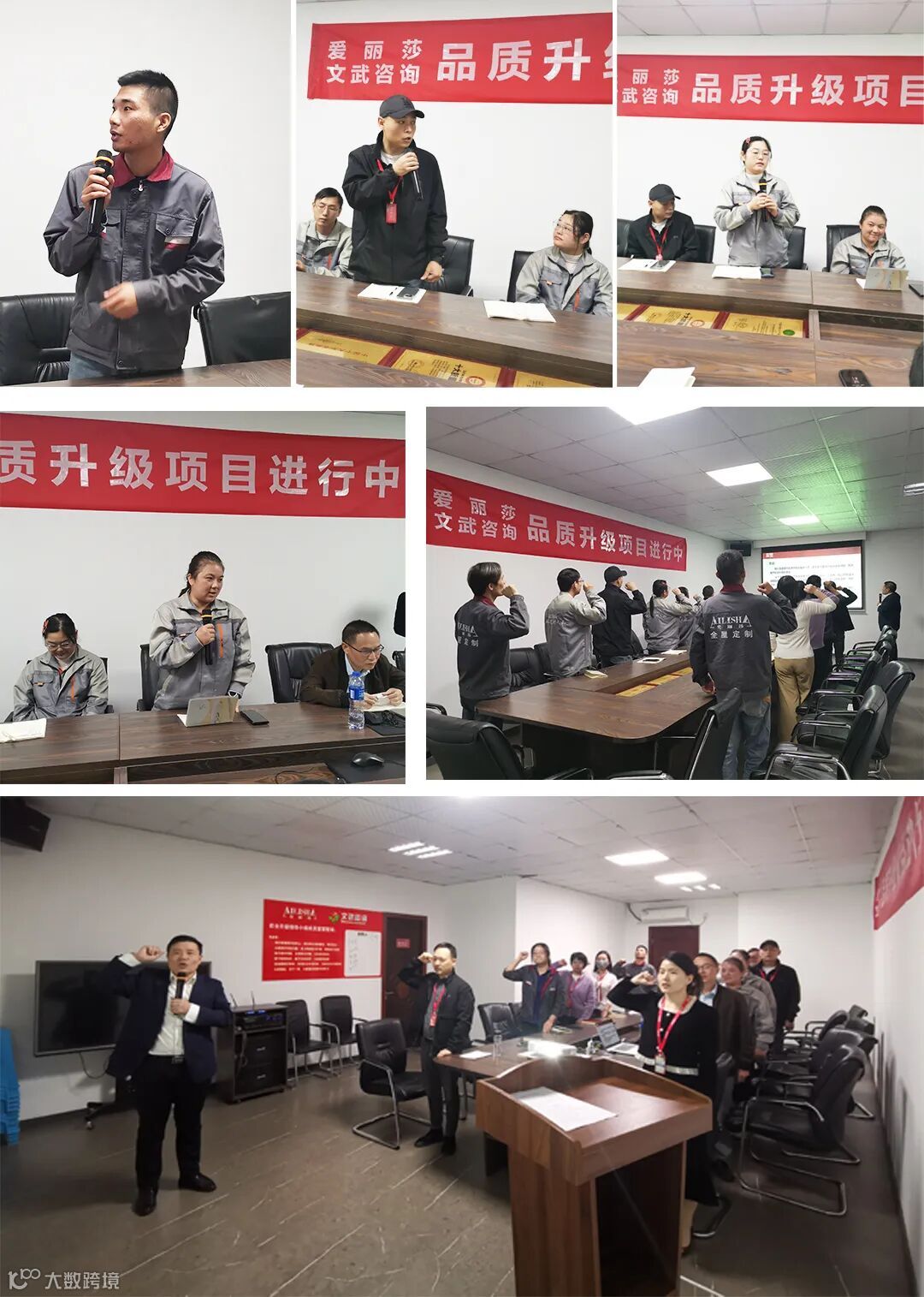 会上,爱丽莎梁总、杜厂分别进行讲话,梁总首先对文武咨询的入驻表示了热烈的欢迎,随后,和与会人员对市场产品交付标准的需求进行了简述。并介绍了公司近期发展的规划和对未来的展望,梁总重点提出,品质升级是企业发展最重要的布局,希望通过引进文武咨询品质升级系统能给企业进行提升改革,带来崭新的一面。