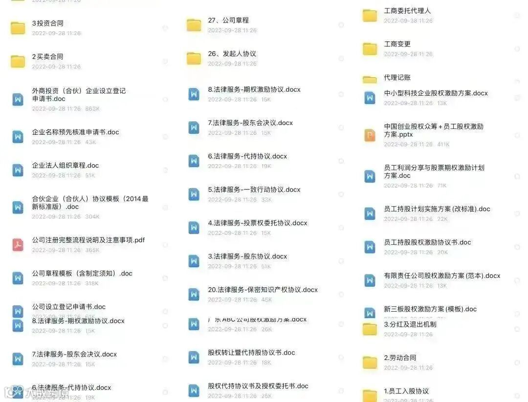 3、23套学习股权融资方案、21套学习股权投资方案、21套学习股权变更方案、19套股权收购方案…
