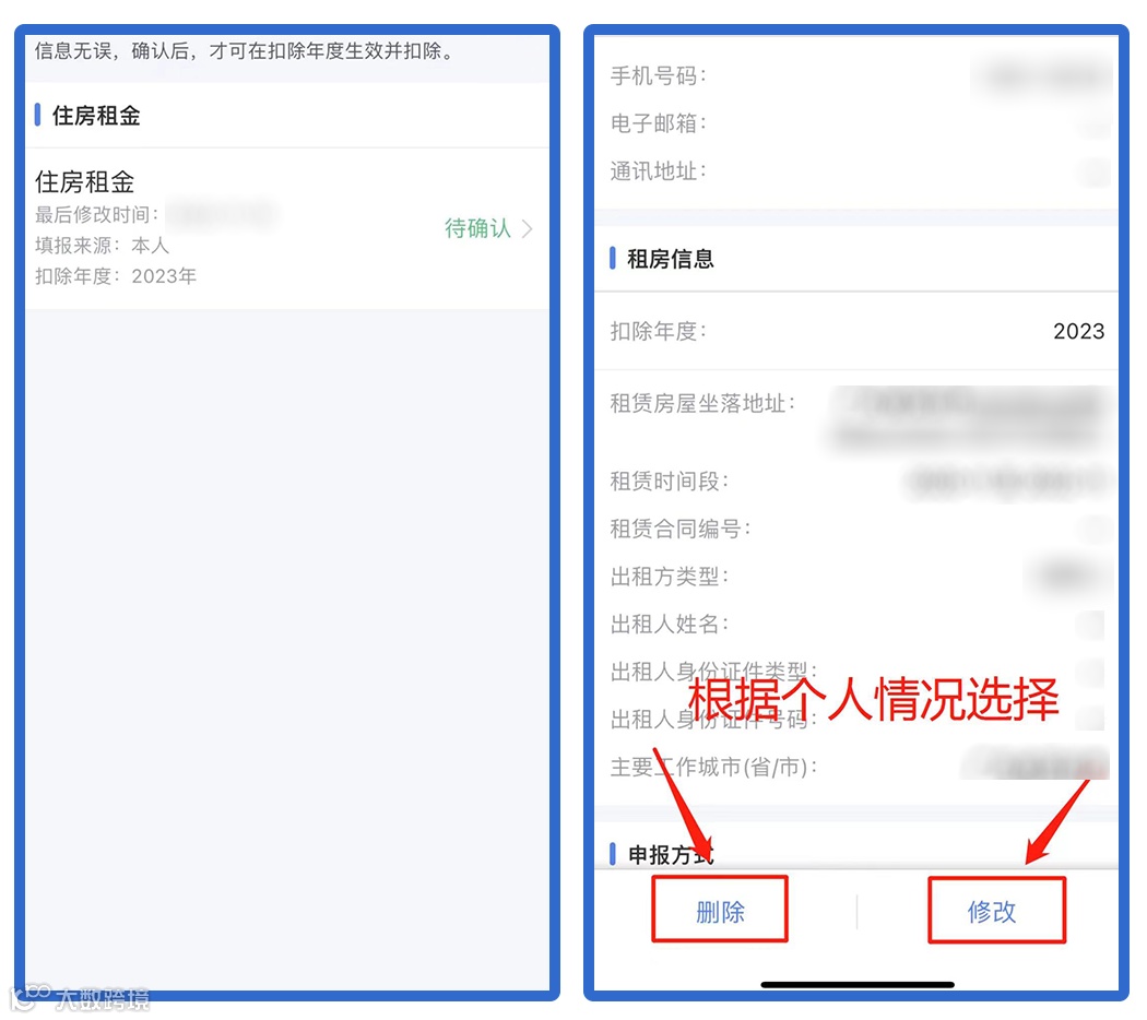 用户可以在确认之后,在App首页选择专项附加扣除填报,选择扣除年度2023查看已提交的信息,如有变动可以选择作废或修改。