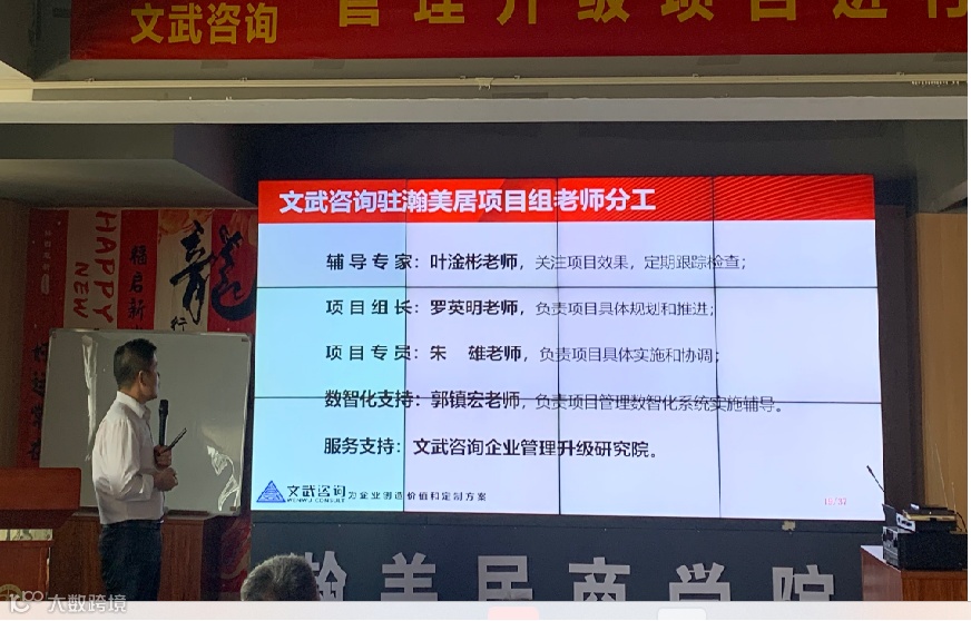 上午10点,本次启动大会在瀚美居工厂办公大楼三楼准时召开,文武咨询叶老师、项目组罗老师、朱老师、郭老师,瀚美居巴董事长、孙总、何经理及全体管理者参加了本次大会。