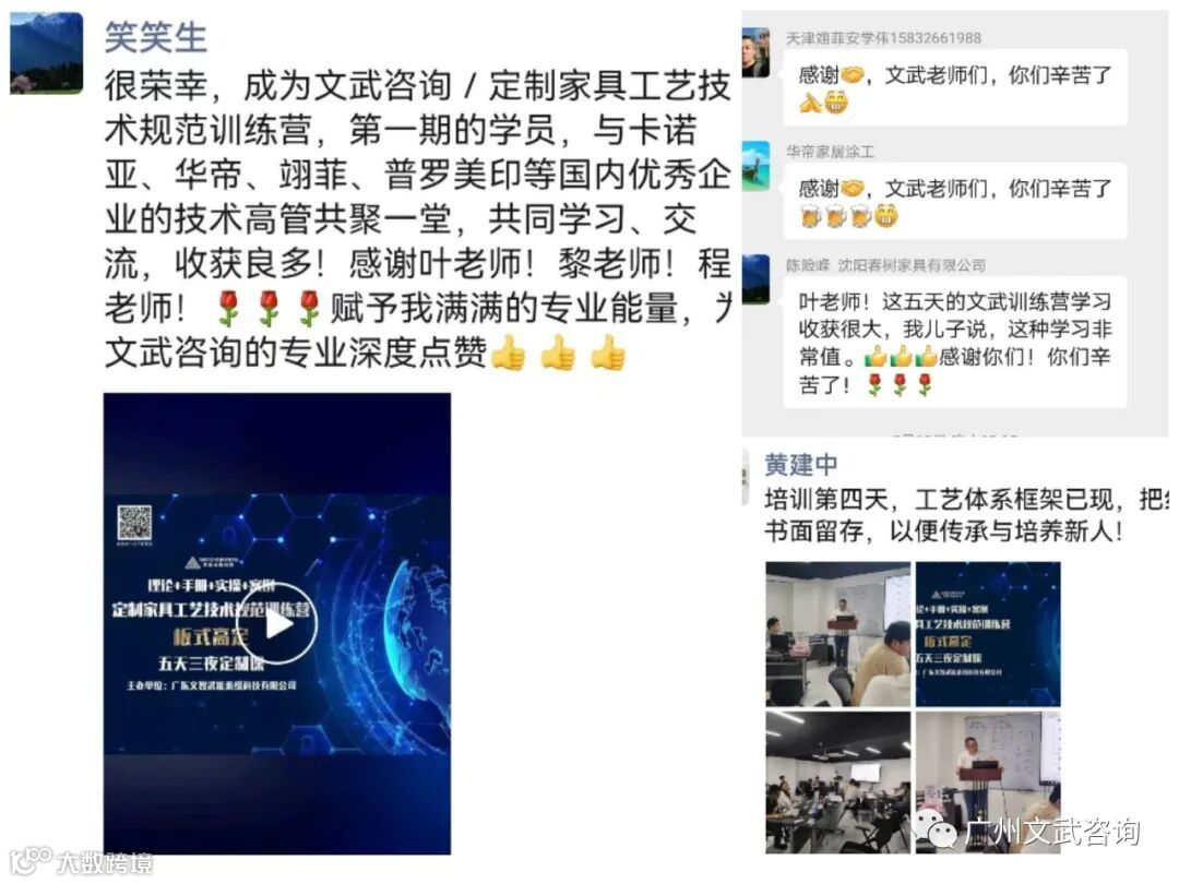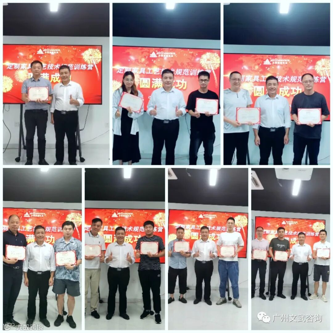 2022年8月8日-8月12日,由广东文智武能系统科技有限公司(以下简称文智武能)主办的《定制家具工艺技术规范训练营》在文武广州培训基地盛大召开。参与本次训练营的企业有卡诺亚、华帝家居、普罗美印、天津翊菲、佛山翊菲、佛山翊尚、卡夫曼。