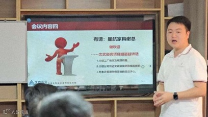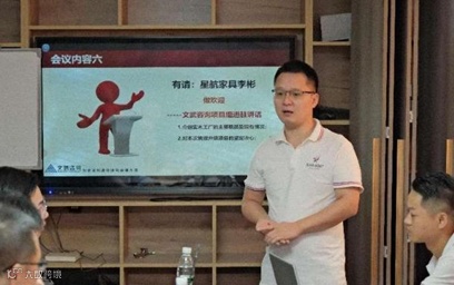 上午9点,本次大会在星航家具会议室准时召开,文武咨询叶老师、项目组郭老师、巫老师,星航家具谢总、廖总、实木负责人李彬、星航家具全体班组长级和班组长以上的管理干部参加了本次大会。