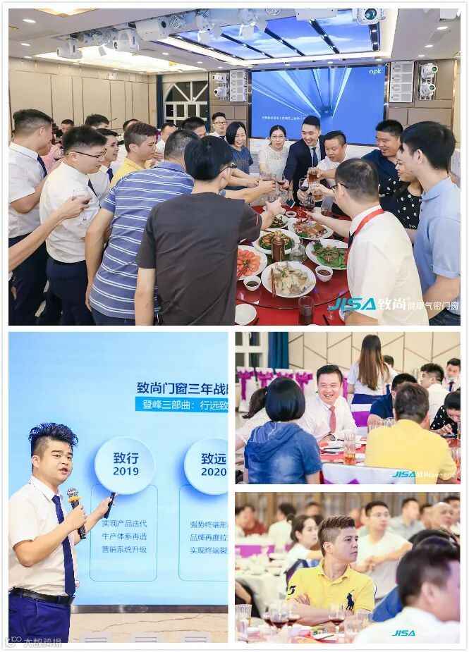 致尚门窗副董事长李钧海先生在晚宴上致辞,2020 年,一个充满挑战和机遇之年。后疫情时期,全行业都面临低迷的市场大环境。致尚的营销策略应势而变,全面探索与研究营销新路径,通过“线上直播”,为经销商引流与输送了大量的客户与订单;同时,在5 月,与高铁媒体再度携手,启动全国立体式广告投放模式;6 月,致尚 618京东旗舰店携新品隆重上线,正式开启线上线下全国联动促销。这一系列的营销策略,使得致尚的业绩在逆势中稳步增长。展望未来,致尚将一如既往地以产品为核心,以品质为生命,继续加大研发力度,完善门窗生产的标准化体系;并以营销为驱动,继续加大品牌推广与经销商帮扶,打造最强的致尚终端盈利系统。