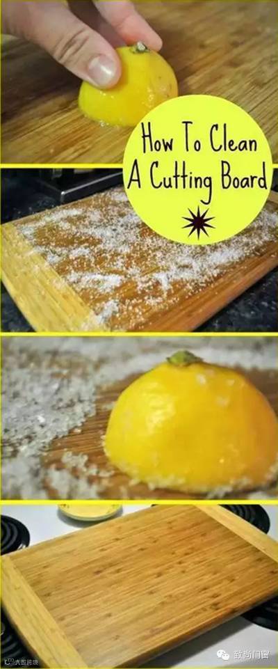 ▼粗粒盐和柠檬能拯救你的旧菜板。
