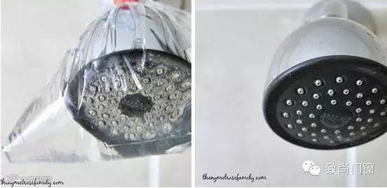 ▼淋浴莲蓬头用久了水变小了,用塑料袋盛上醋,泡一晚上跟新的一样!