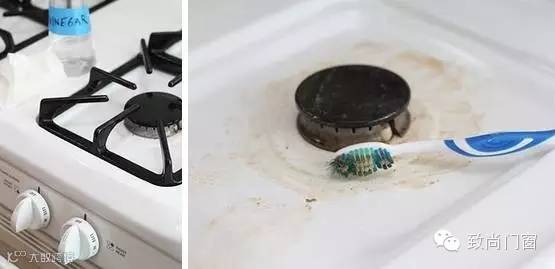 ▼至于打火灶,第一步,热肥皂水浸泡,抹布擦掉,第二步,醋泡,擦掉,第三步,洗洁精威猛先生啥的,用旧牙刷~