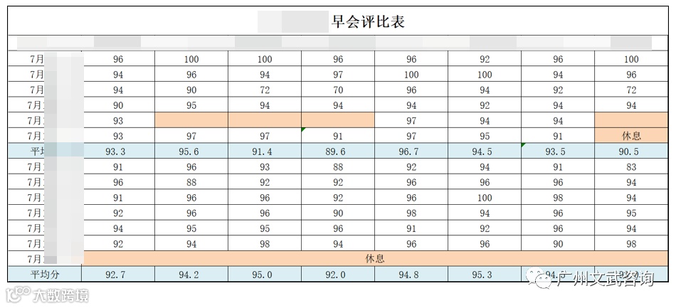 (早会评比表)