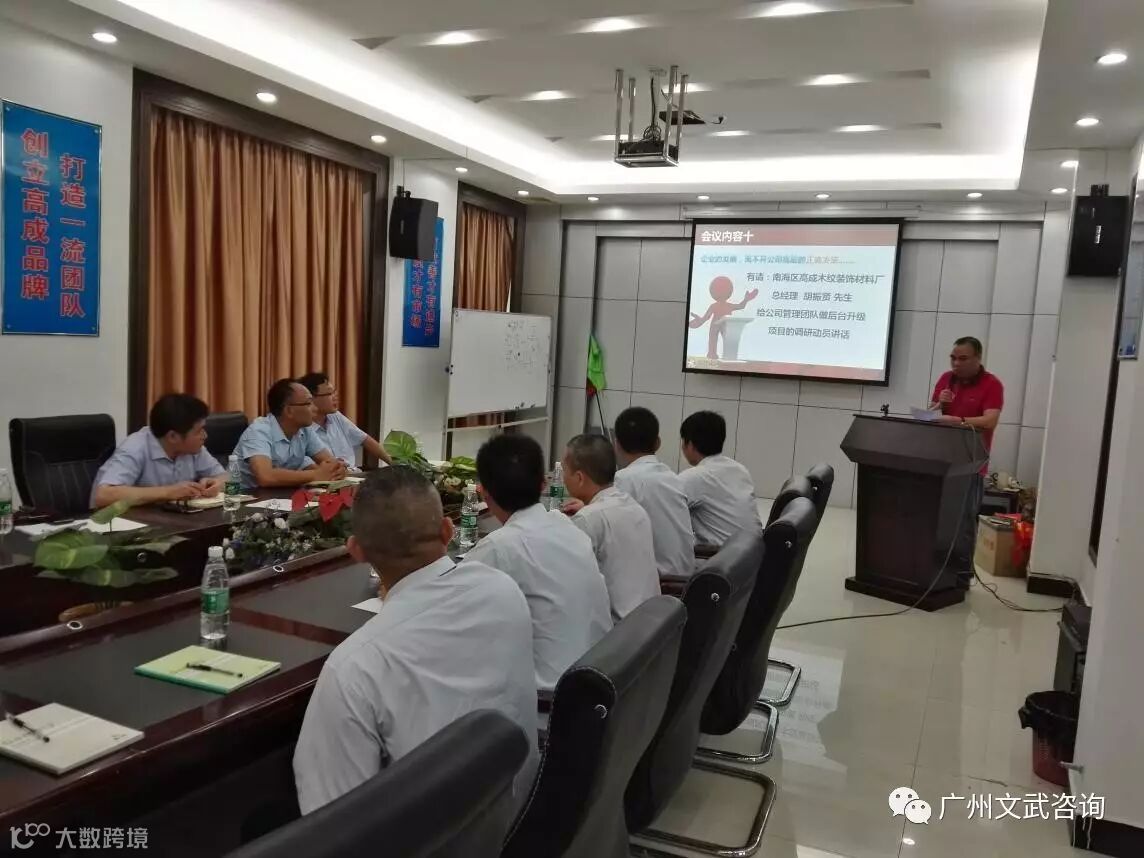 8月17日,广州文武咨询项目组正式入驻佛山市南海区高成木纹装饰材料厂,于当日下午在佛山高成木纹厂一楼会议室举行项目启动会。工厂中高层管理人员参加了本次会议。