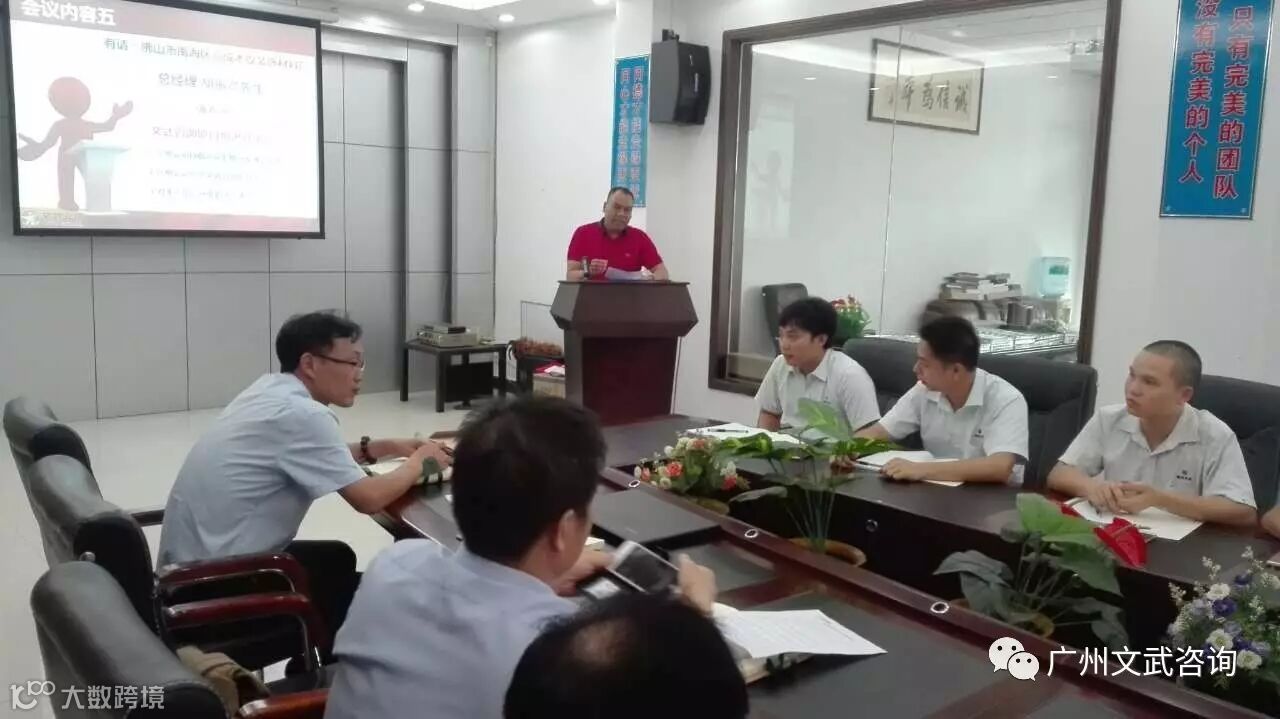 广州文武咨询驻佛山高成木纹厂项目组组长谢华强老师就本次调研事宜及项目展开步骤进行了详细讲解,并对项目推进第一个月的相关工作做了安排。