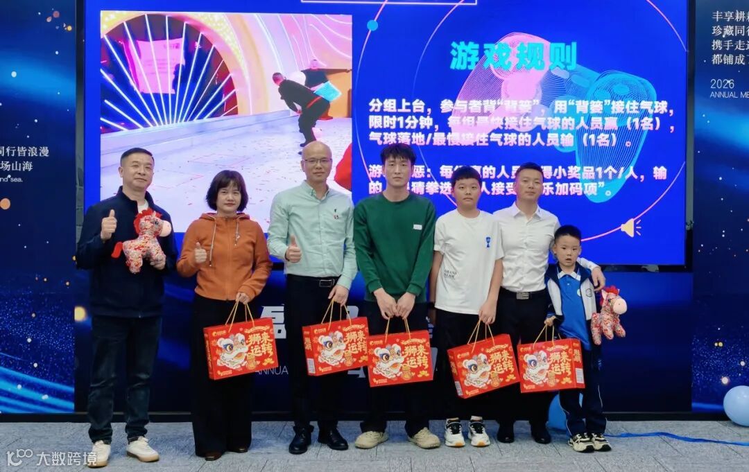 表彰环节过后,游戏互动与抽奖环节将年会氛围推向了高潮。在轻松愉悦的氛围中增进了彼此的感情;多轮抽奖环节惊喜连连,丰厚的礼品、幸运的中奖者,每一次开奖都伴随着欢呼与喝彩,将满满的福气与好运送到了每一位家人手中。
