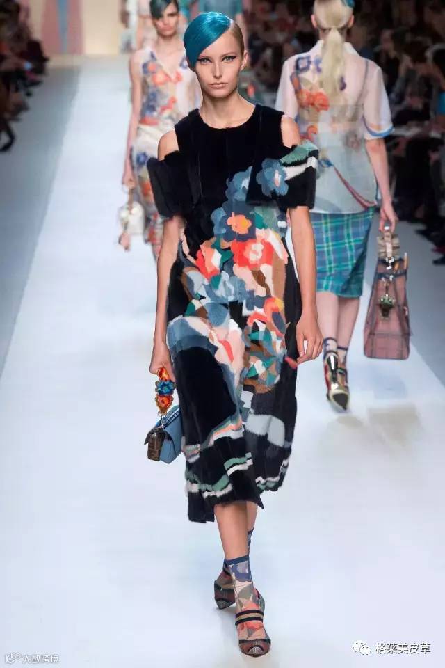 作为皮草时尚发烧友米兰时装周用创意拼接、简约造型、复古配搭呈现了别具特色的皮草夏日时尚。