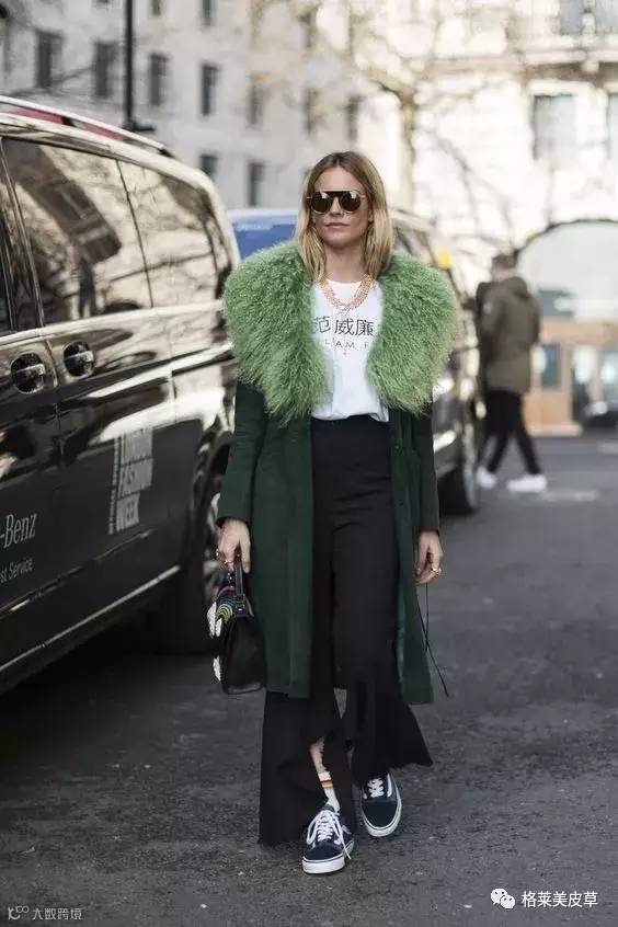 相对巴黎、纽约、米兰时装周而言,伦敦时装周的T台上采用皮草材料的设计师较少。虽然T台上皮草设计有些冷清,但是这依然无法阻挡热衷皮草的时尚人士表达对于皮草时尚的喜爱,伦敦街头身着皮草的时尚人士用鲜亮色彩点亮这座时尚都市。
