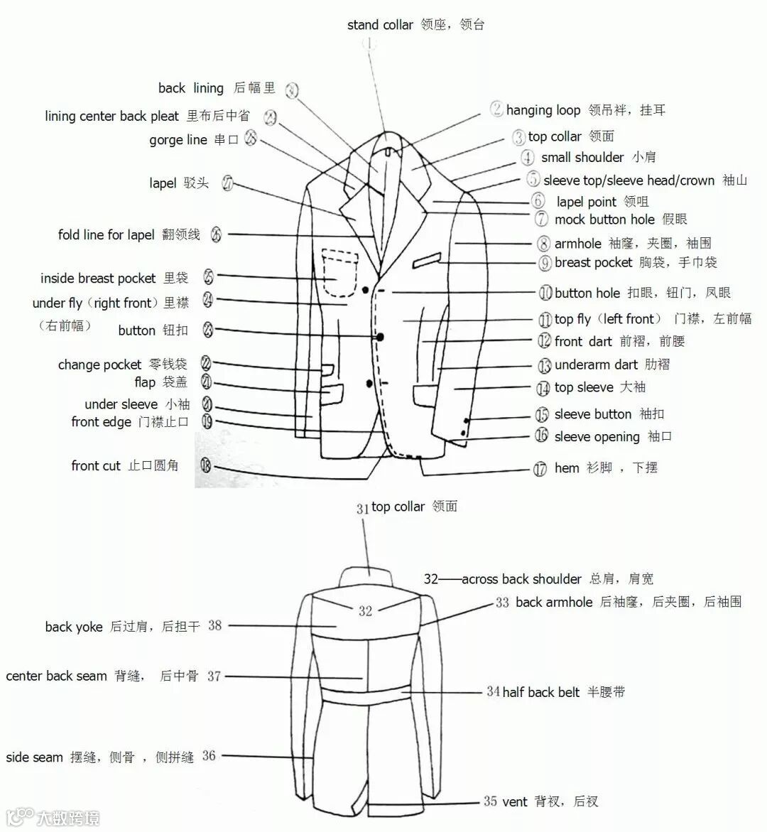 服装部位名称图解——外套