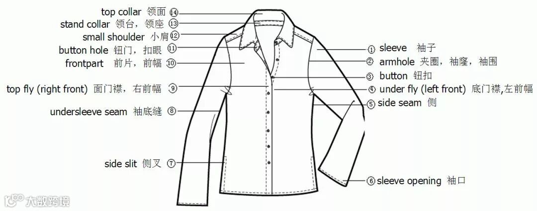 服装部位名称图解——衬衫