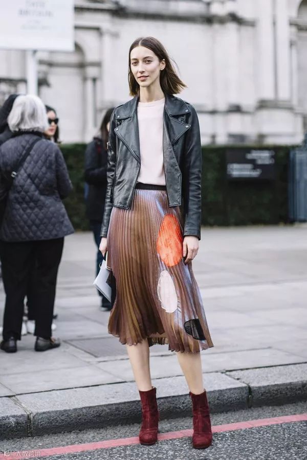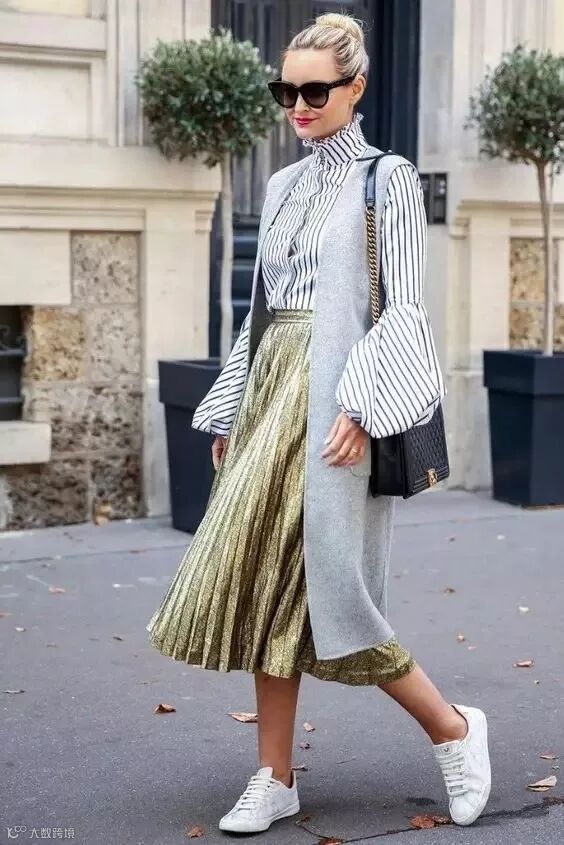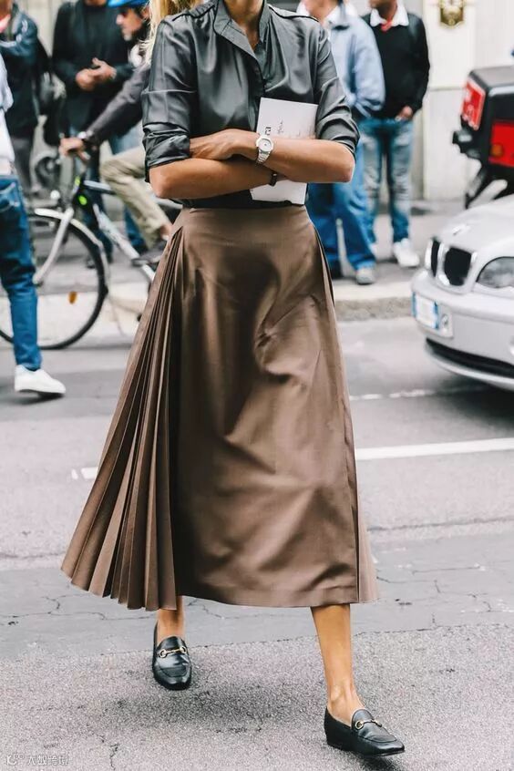 百褶裙 Pleated skirt:是指裙身由许多细密、垂直的皱褶构成的裙子。