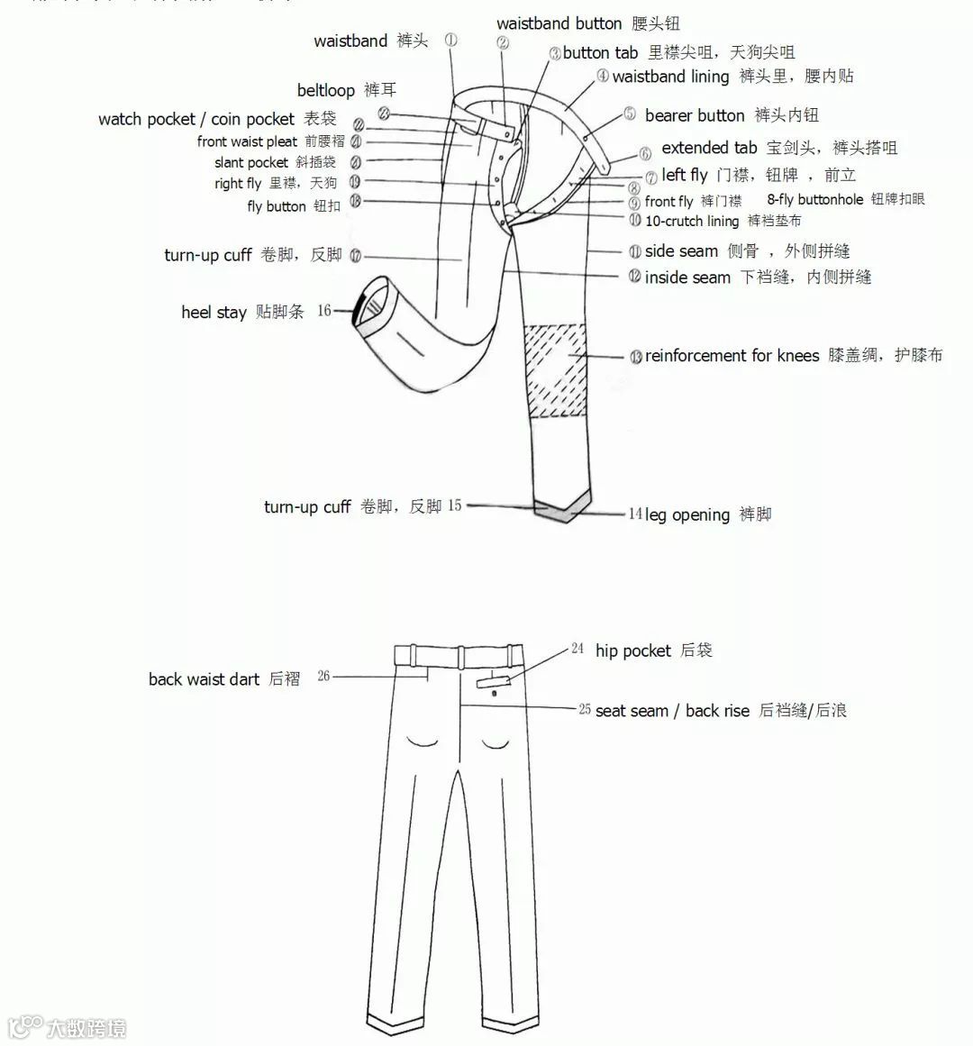 服装部位名称图解——裤子