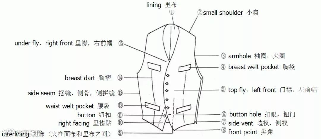 服装部位名称图解——马甲