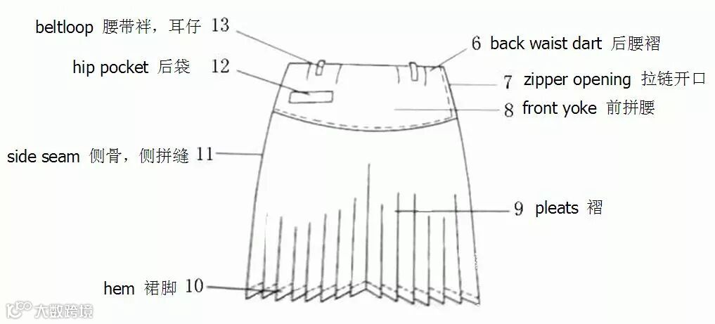 服装部位名称图解——裙子