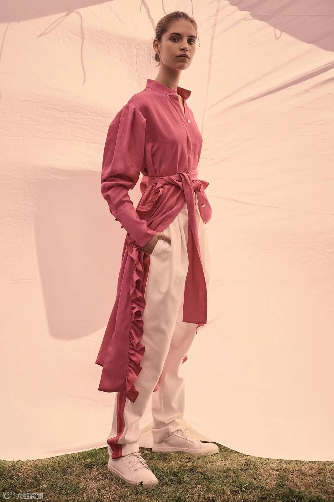 喇叭袖 trumpet sleeve:指袖管形状与喇叭形状相似的袖子。