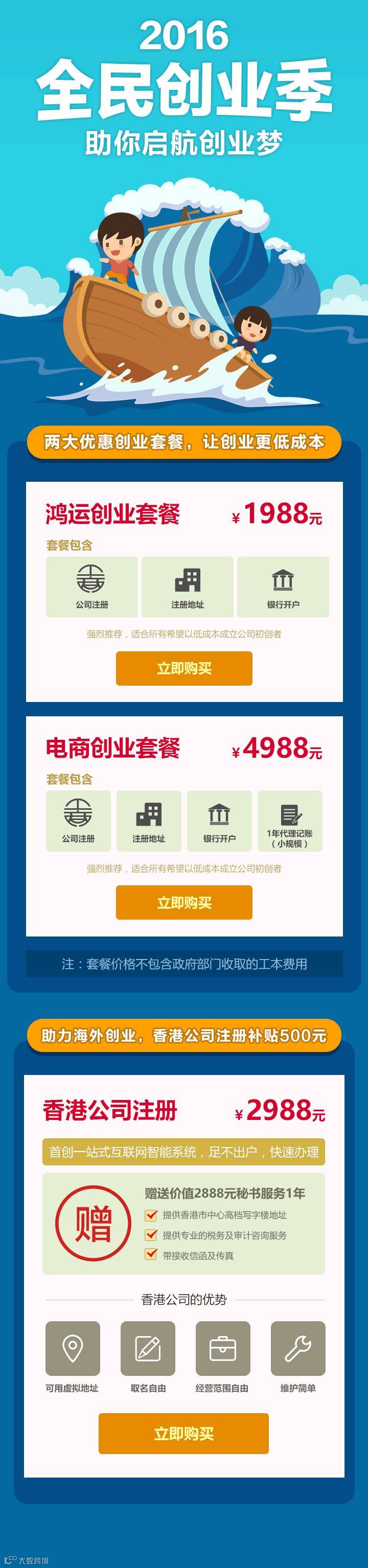 电商创业套餐:注册公司+地址+开户+1年代理记账(小规模)=4988元