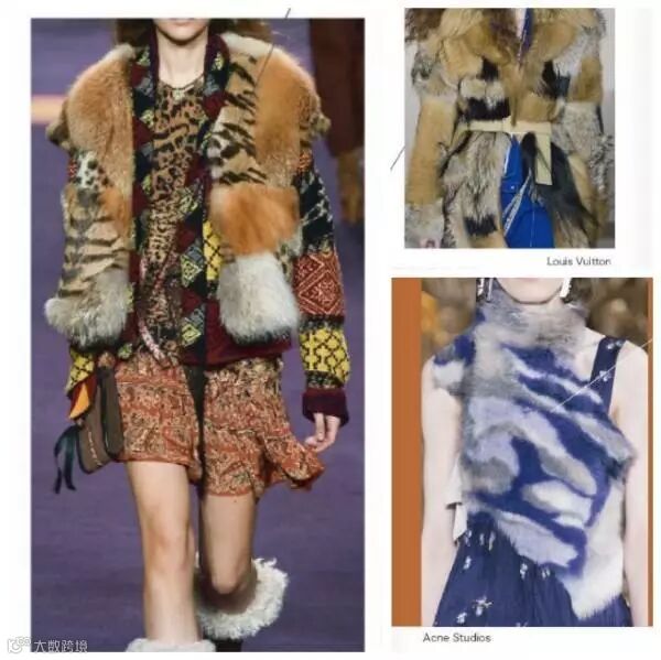 瑞典最火的品牌Acne Studios利用拼接和染色处理皮草,搭配不规则廓形产生自然生动的线条感和块面感。