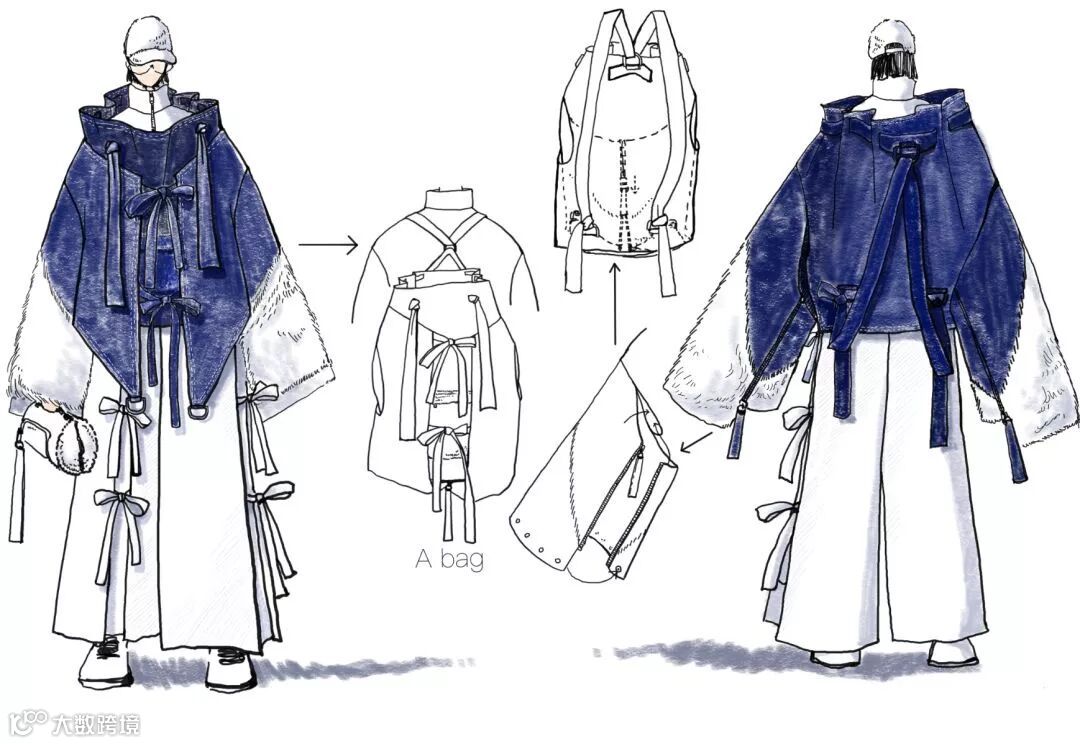 设计师灵感来源于雪山及冰雪户外运动 ,设计师通过使用不同种类的毛皮展现冰雪山石的风貌。设计中毛皮防风外套还可以变化成背包及不同穿搭结构。通过户外运动风格展示当代女性勇于冒险、自信及男性化的一面。它也表达了人类使用天然材料:毛皮,用于探索大自然的意义,天然毛皮源于自然,最终却又回归自然。