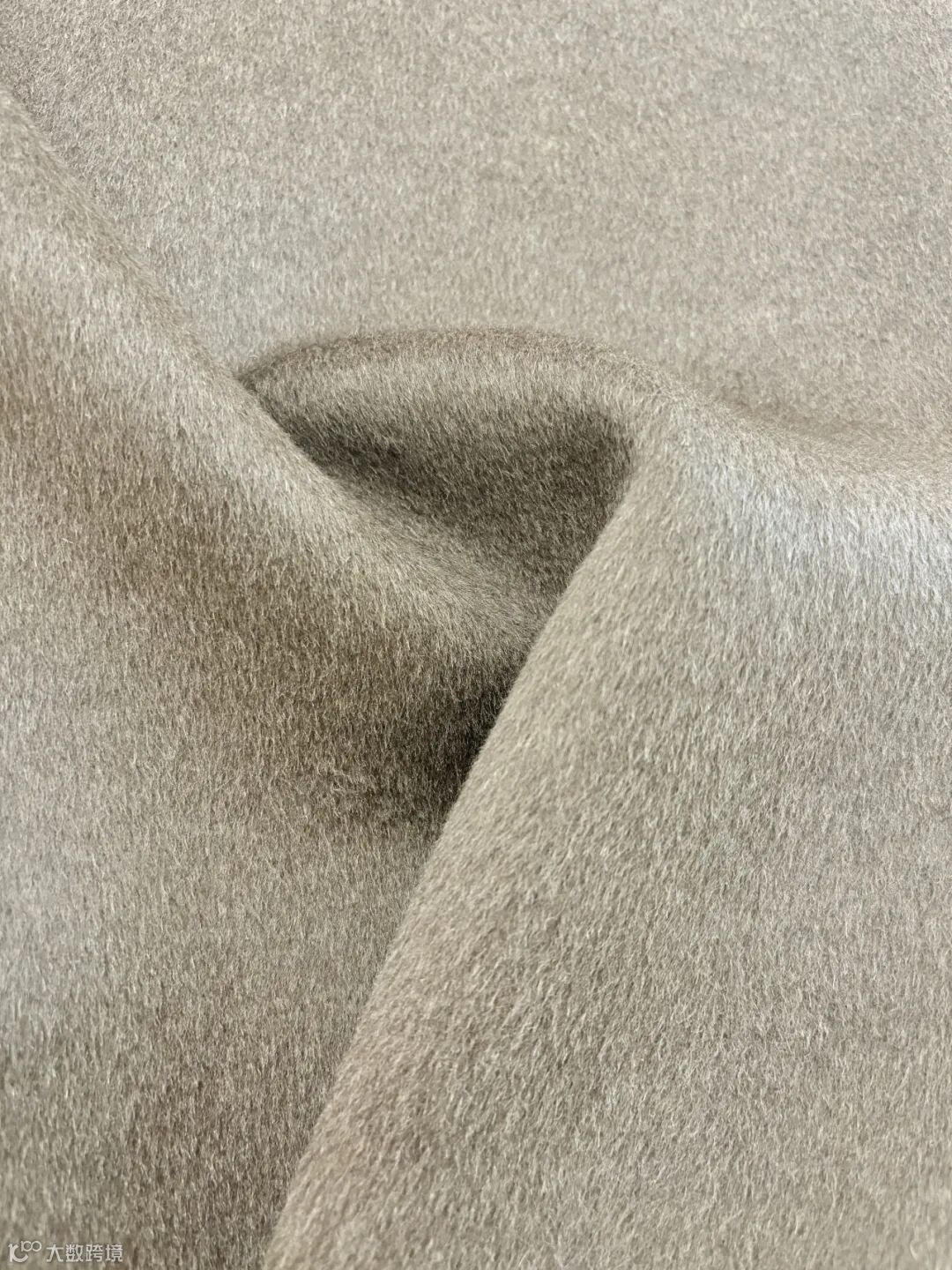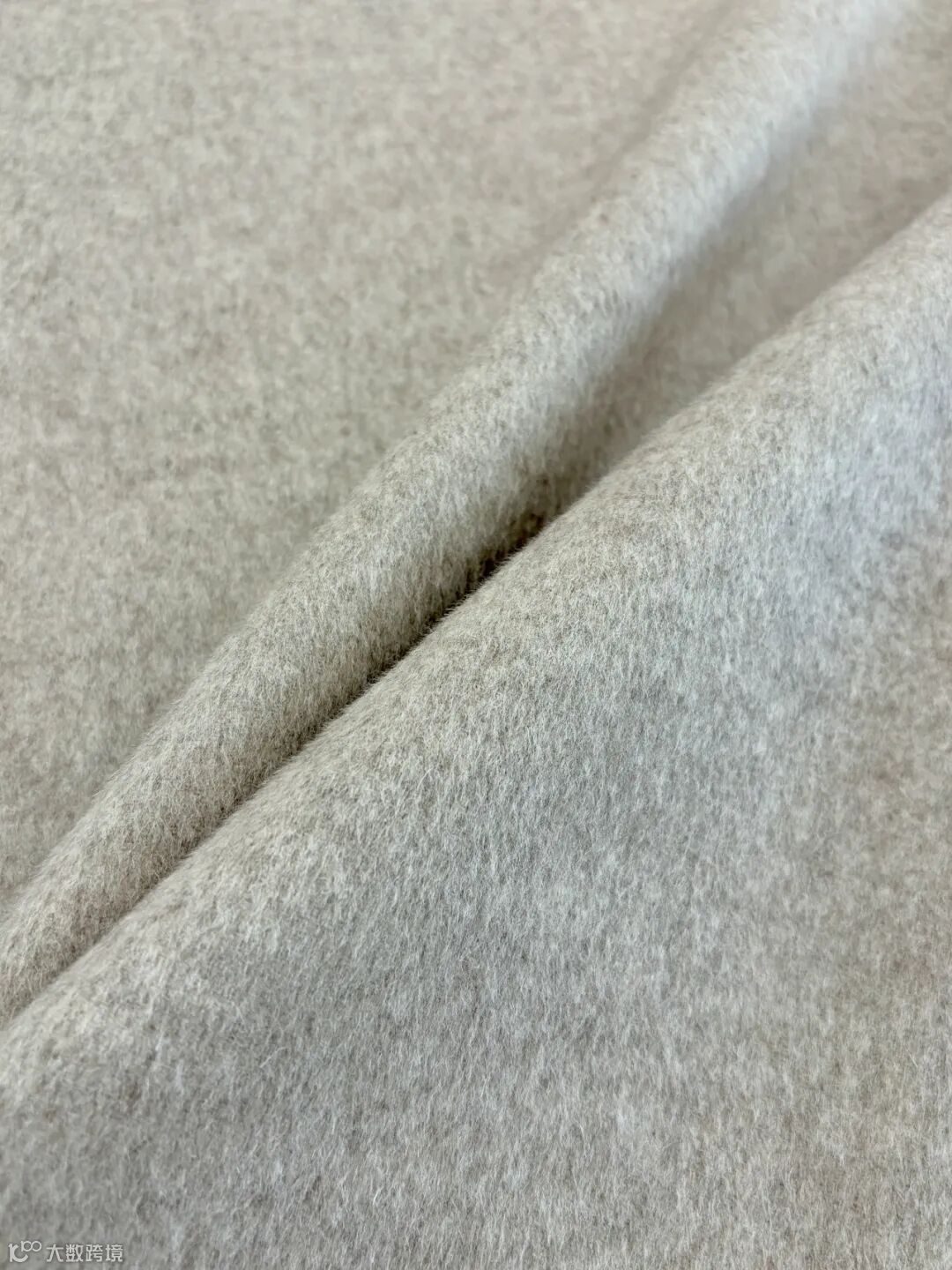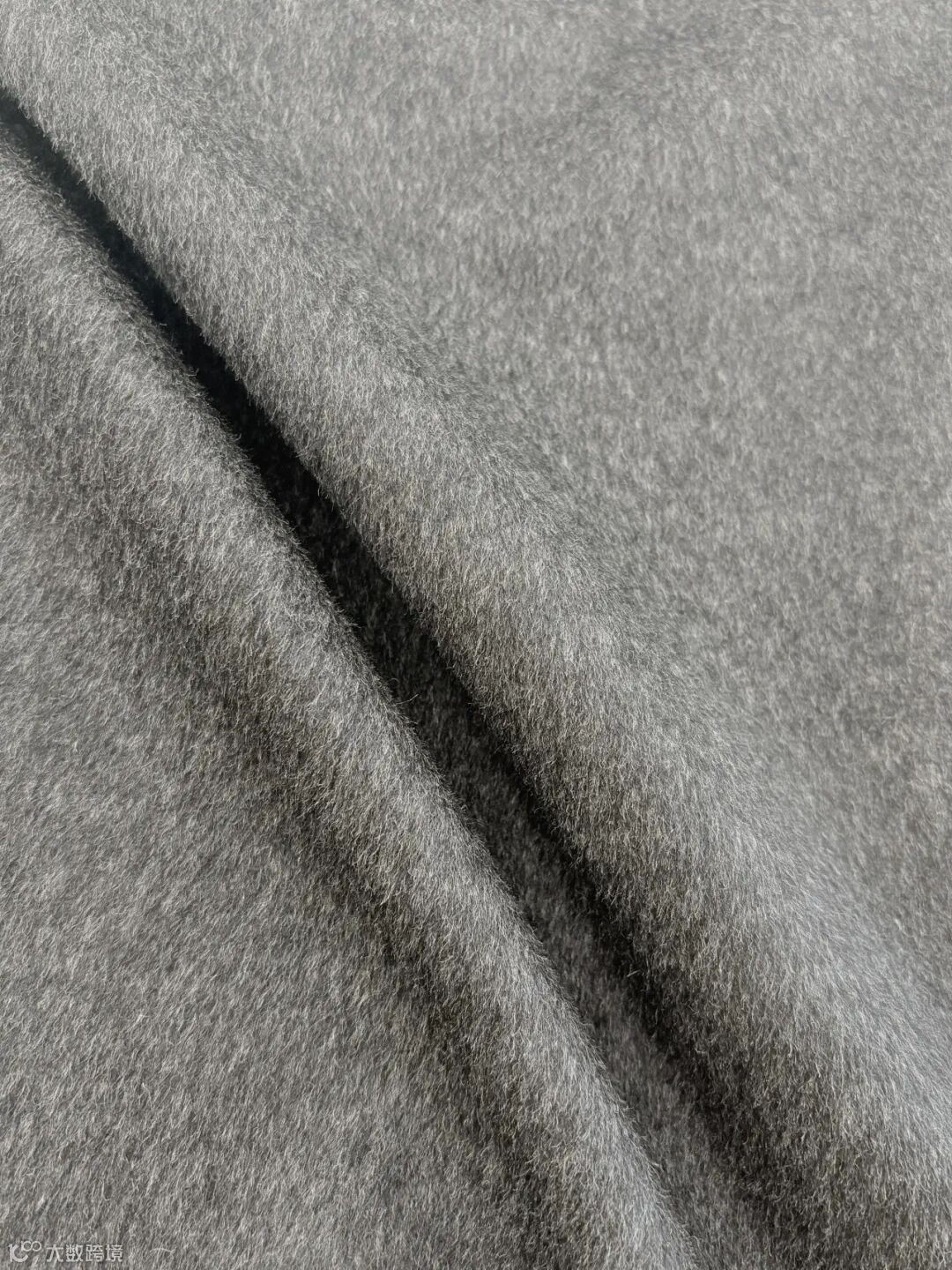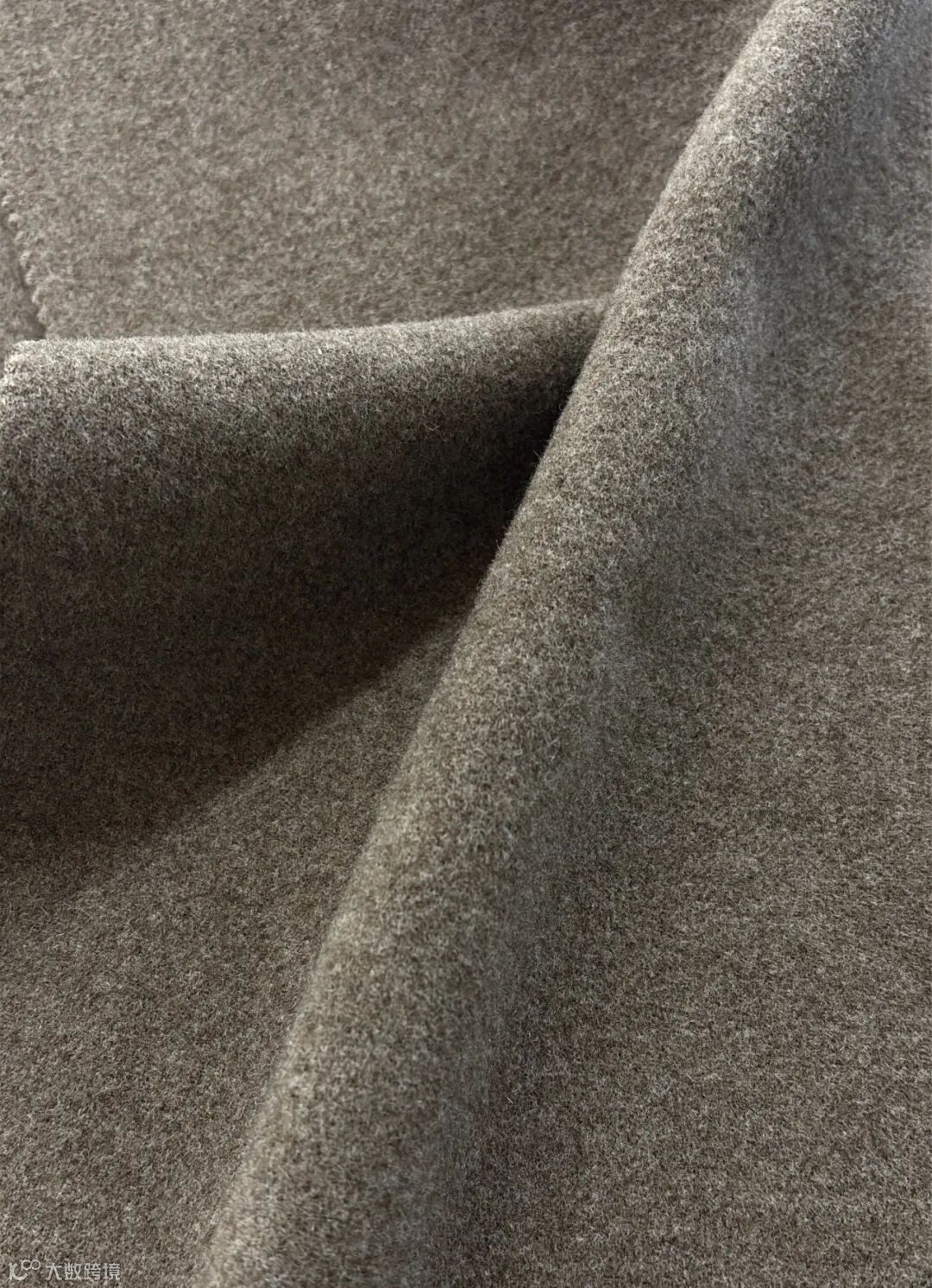 820克/米的克重使其成为四款面料中最厚重的一款,提供卓越的保暖性能。通过双面顺毛工艺处理,面料表面绒毛整齐细腻,触感如丝绒般顺滑。150厘米的幅宽确保了面料在裁剪时的利用率,减少浪费。这款面料特别适合制作重装外套,能在严寒条件下提供可靠的保护,同时保持优雅的版型。